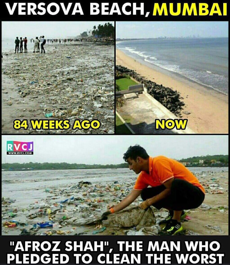An 85 Week effort to clean up Versova Beach.. @AfrozShah1 A truly remarkable initiative.. You have taught me so much.. ЁЯЩПЁЯП╝ pic.twitter.com/9jBAl9F9Ho