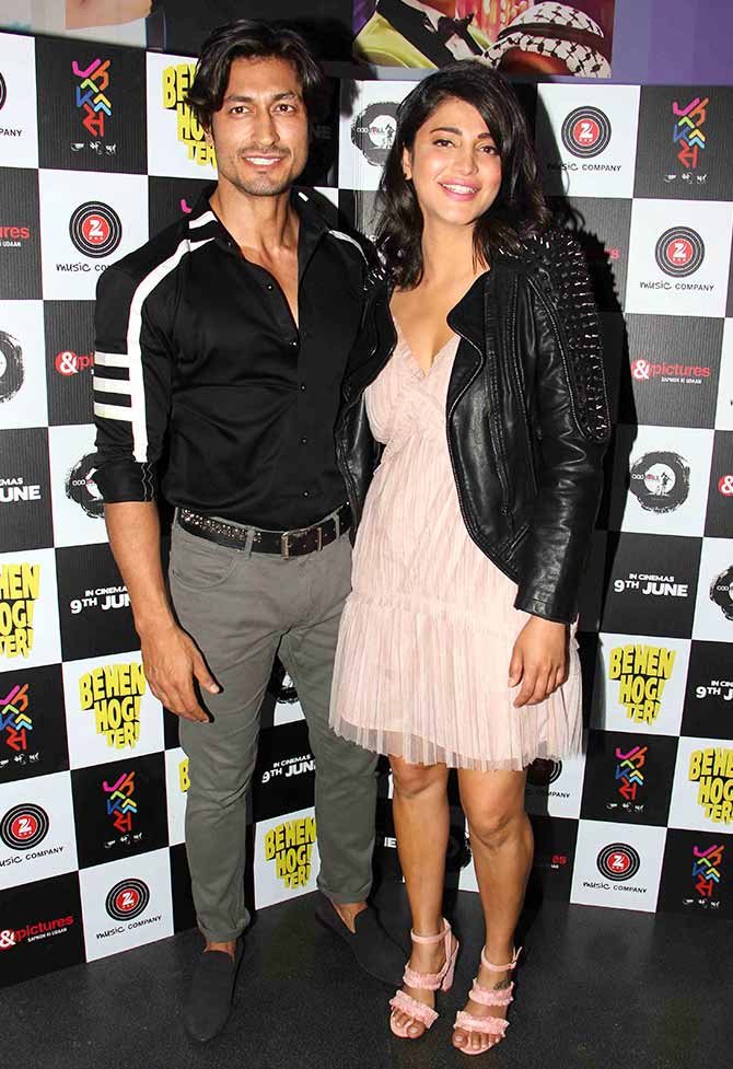 @shrutihaasan getting appreciated for her comic timing and range of emotions in #BehenHogiTeri - With #VidyutJamwal at movie's premiere..